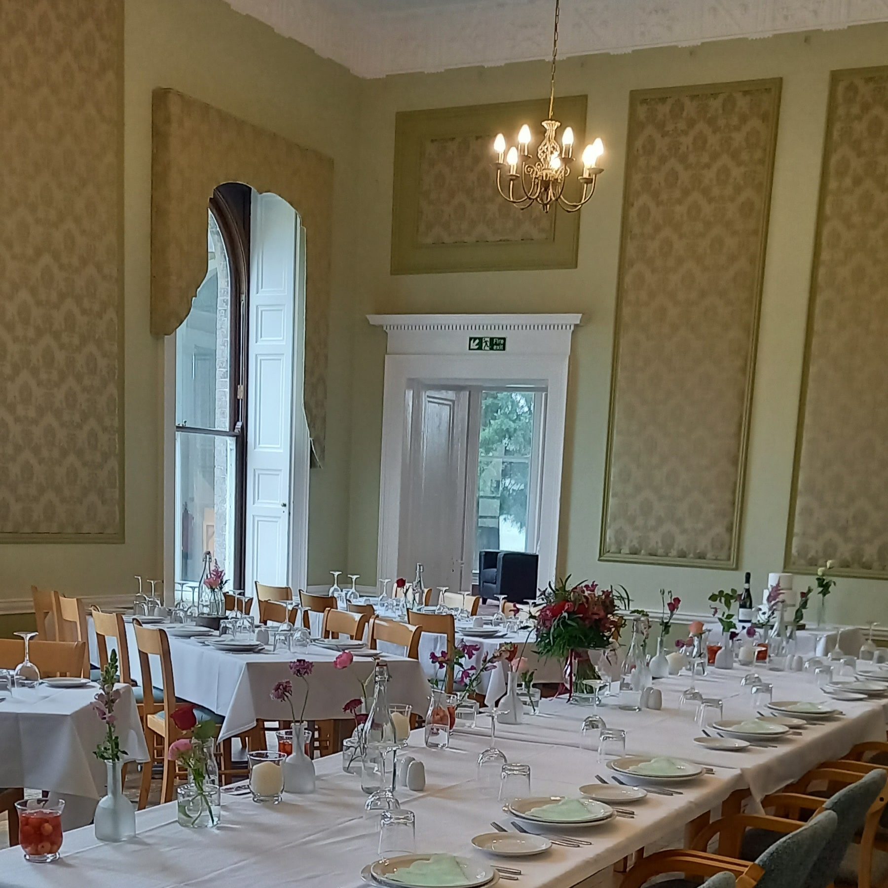 This will give you the library, drawing room, dining room and grounds surrounding The Hall. Your caterers will have access to the kitchen and wash-up area. You will also have the use of one room for changing, leaving personal belongings for the bride/groom.